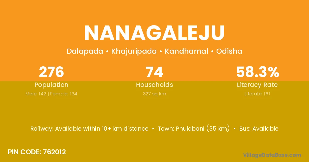 Phulabani (35 km) is the nearest town to Nanagaleju village for major economic activities and is located approximately 35 km away.
