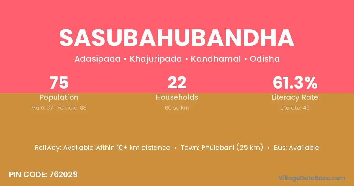 Phulabani (25 km) is the nearest town to Sasubahubandha village for major economic activities and is located approximately 25 km away.