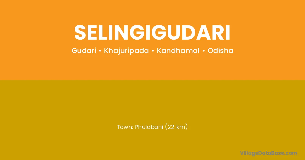 Phulabani (22 km) is the nearest town to Selingigudari village for major economic activities and is located approximately 22 km away.
