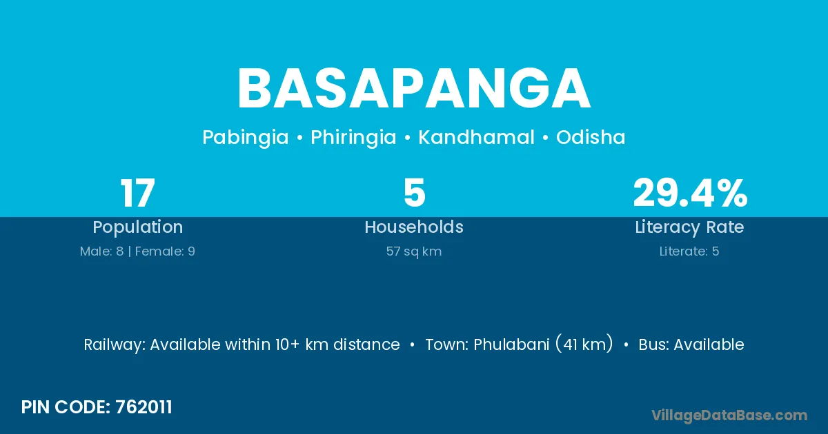 Phulabani (41 km) is the nearest town to Basapanga village for major economic activities and is located approximately 41 km away.