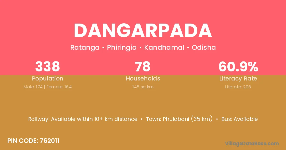Phulabani (35 km) is the nearest town to Dangarpada village for major economic activities and is located approximately 35 km away.