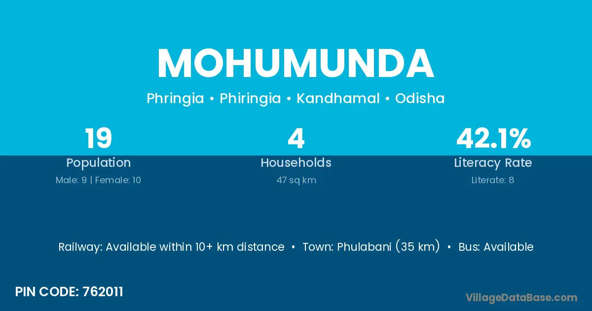 Phulabani (35 km) is the nearest town to Mohumunda village for major economic activities and is located approximately 35 km away.