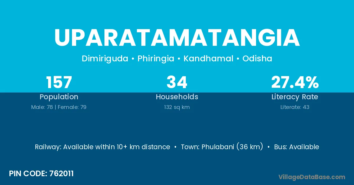 Phulabani (36 km) is the nearest town to Uparatamatangia village for major economic activities and is located approximately 36 km away.