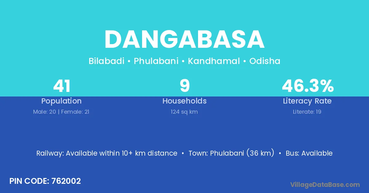 Phulabani (36 km) is the nearest town to Dangabasa village for major economic activities and is located approximately 36 km away.