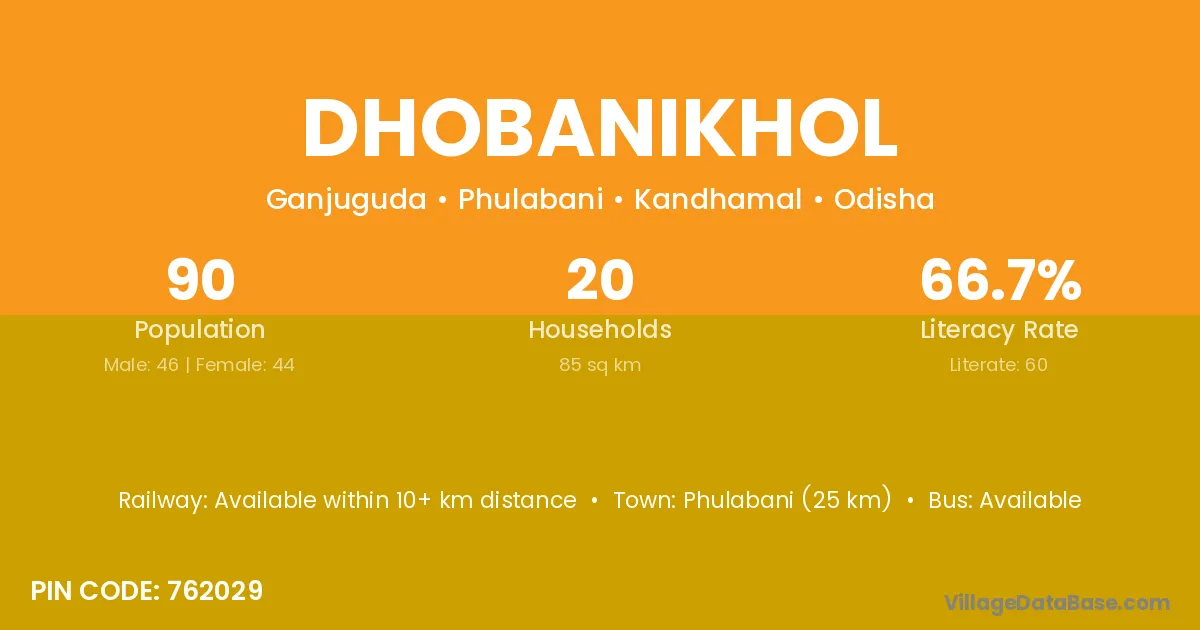 Phulabani (25 km) is the nearest town to Dhobanikhol village for major economic activities and is located approximately 25 km away.
