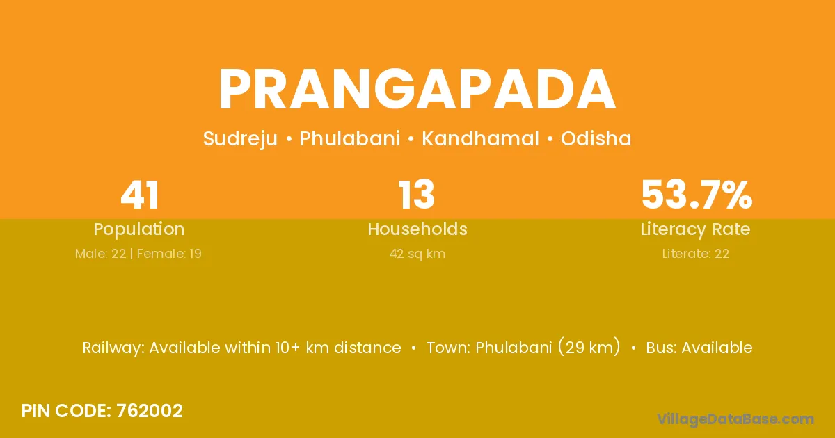 Phulabani (29 km) is the nearest town to Prangapada village for major economic activities and is located approximately 29 km away.