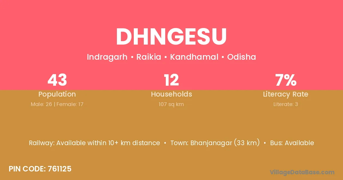 Dhngesu village has a total population of 43 people, of which 26 are males and 17 are females.