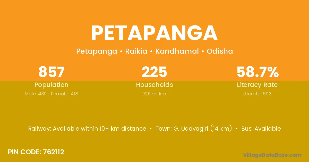 G. Udayagiri (14 km) is the nearest town to Petapanga village for major economic activities and is located approximately 14 km away.