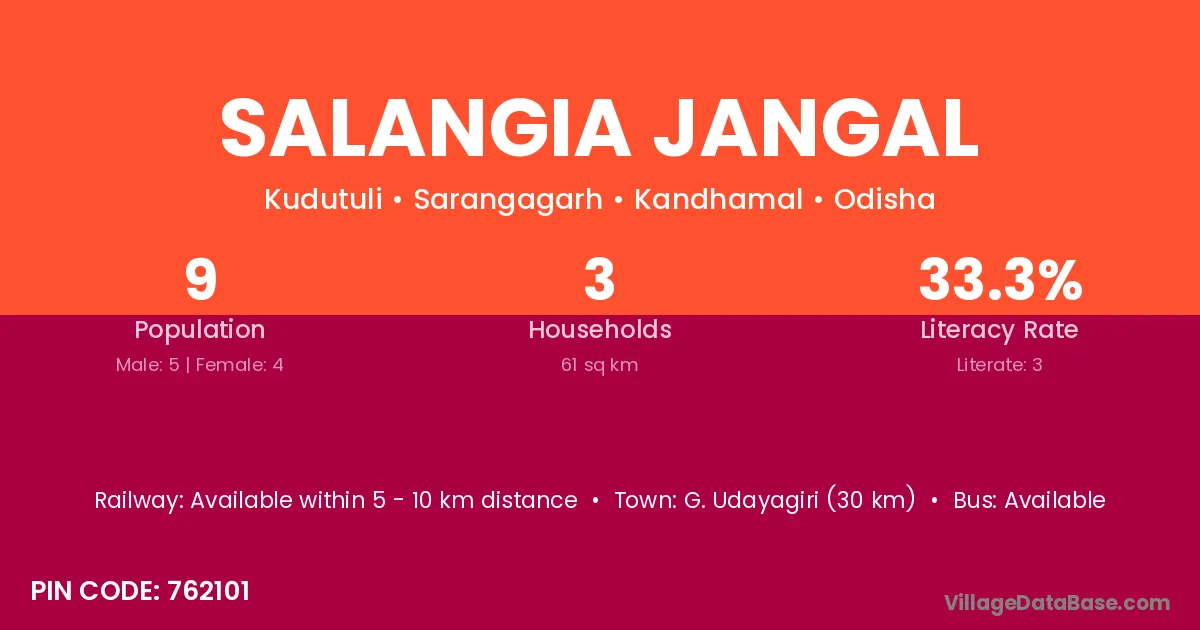 G. Udayagiri (30 km) is the nearest town to Salangia Jangal village for major economic activities and is located approximately 30 km away.