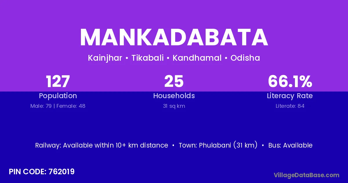 Phulabani (31 km) is the nearest town to Mankadabata village for major economic activities and is located approximately 31 km away.