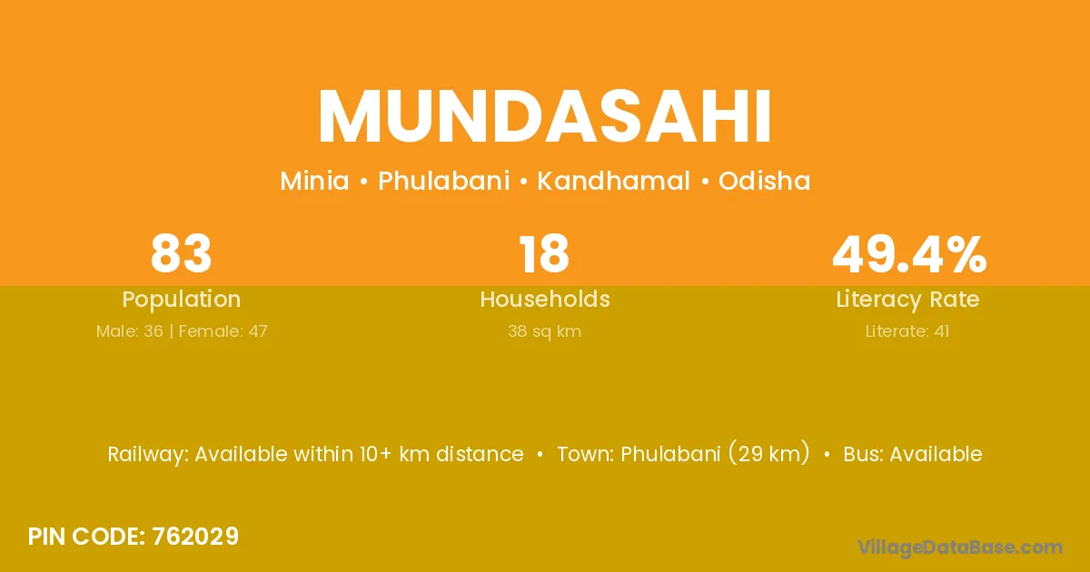 G. Udayagiri (43 km) is the nearest town to Mundasahi village for major economic activities and is located approximately 43 km away.