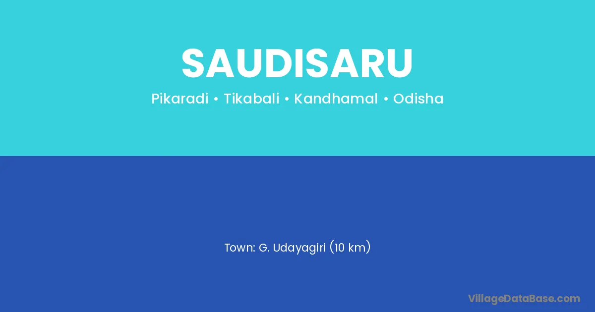 Saudisaru village is located in the Tikabali Tehsil of the Kandhamal district in Odisha .