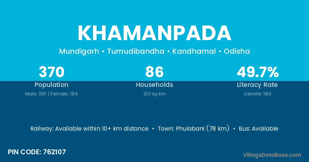 Phulabani (78 km) is the nearest town to Khamanpada village for major economic activities and is located approximately 78 km away.
