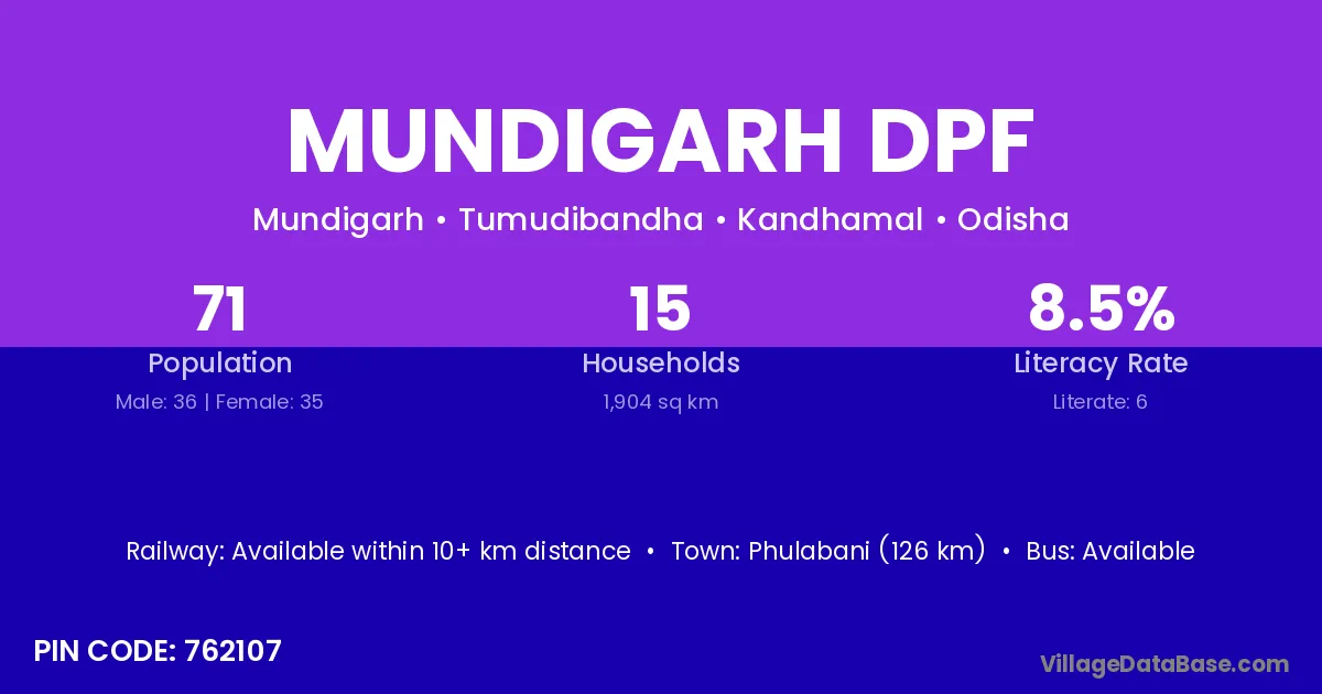 Phulabani (126 km) is the nearest town to Mundigarh Dpf village for major economic activities and is located approximately 126 km away.