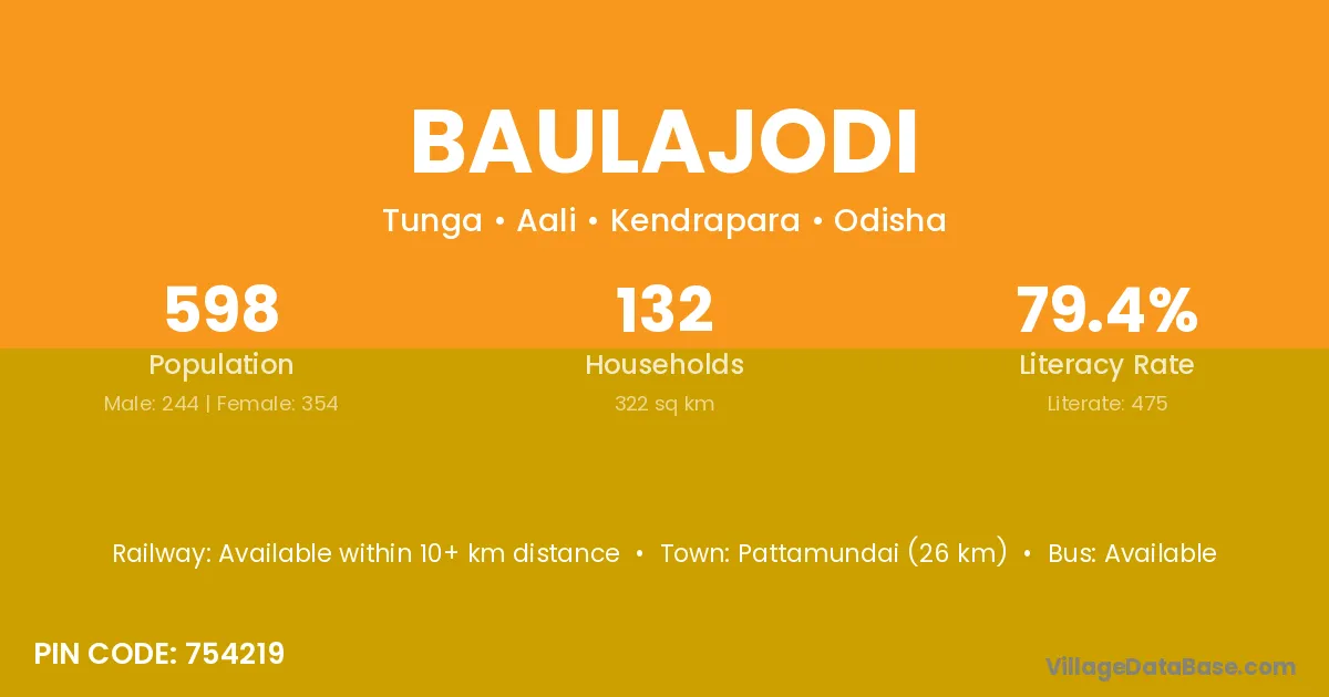 Pattamundai (26 km) is the nearest town to Baulajodi village for major economic activities and is located approximately 26 km away.