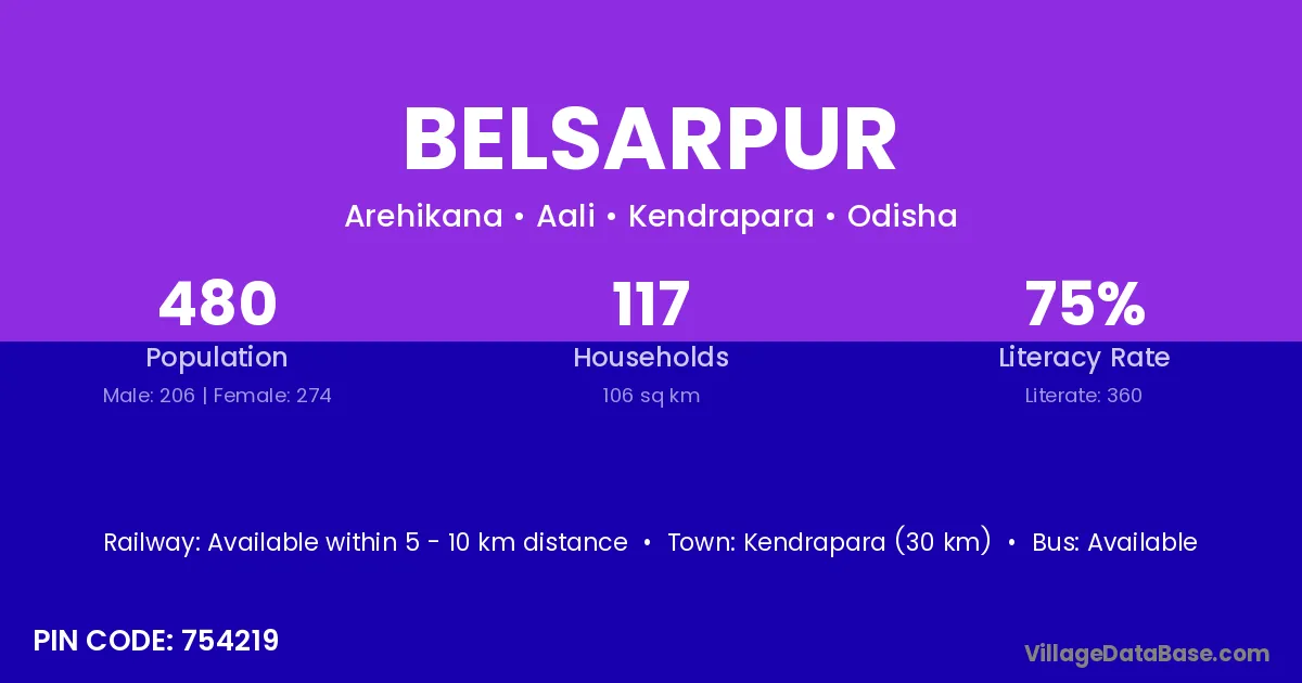 Kendrapara (30 km) is the nearest town to Belsarpur village for major economic activities and is located approximately 30 km away.
