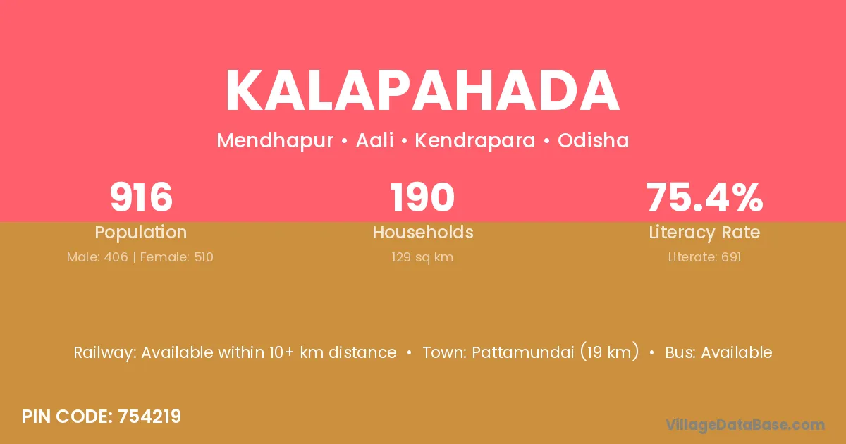 Pattamundai (19 km) is the nearest town to Kalapahada village for major economic activities and is located approximately 19 km away.