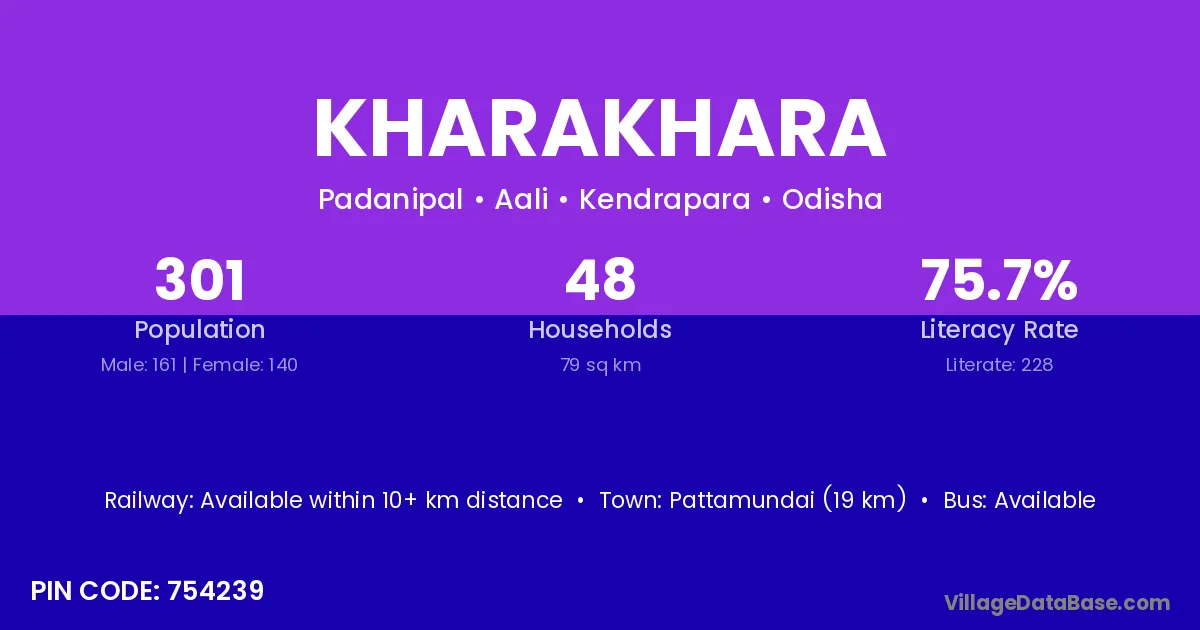 Pattamundai (19 km) is the nearest town to Kharakhara village for major economic activities and is located approximately 19 km away.
