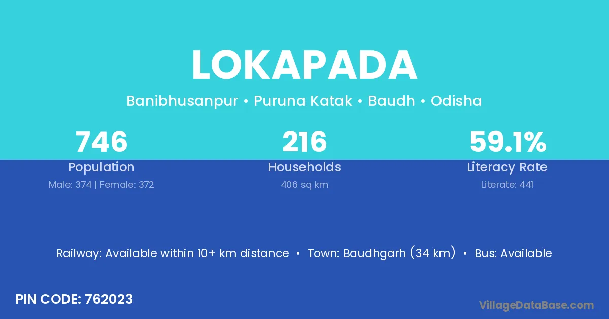 According to Census 2011 information, the village code of Lokapada village is 754219.