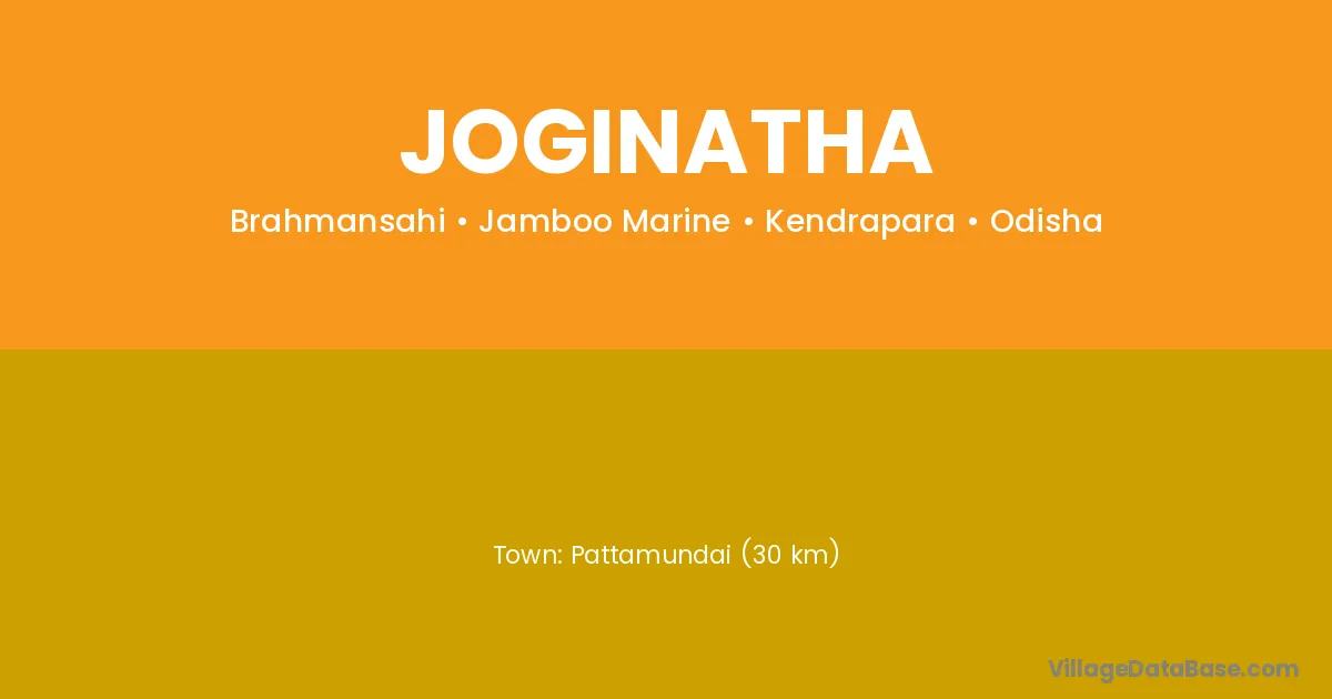 Pattamundai (30 km) is the nearest town to Joginatha village for major economic activities and is located approximately 30 km away.