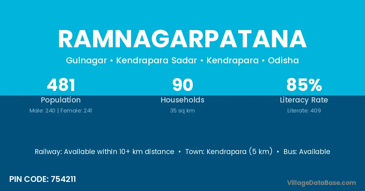 Kendrapara (5 km) is the nearest town to Ramnagarpatana village for major economic activities and is located approximately 5 km away.
