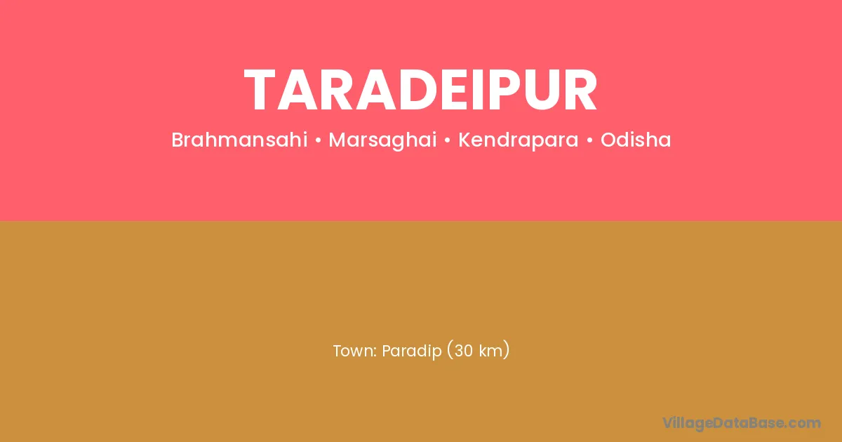 Paradip (30 km) is the nearest town to Taradeipur village for major economic activities and is located approximately 30 km away.