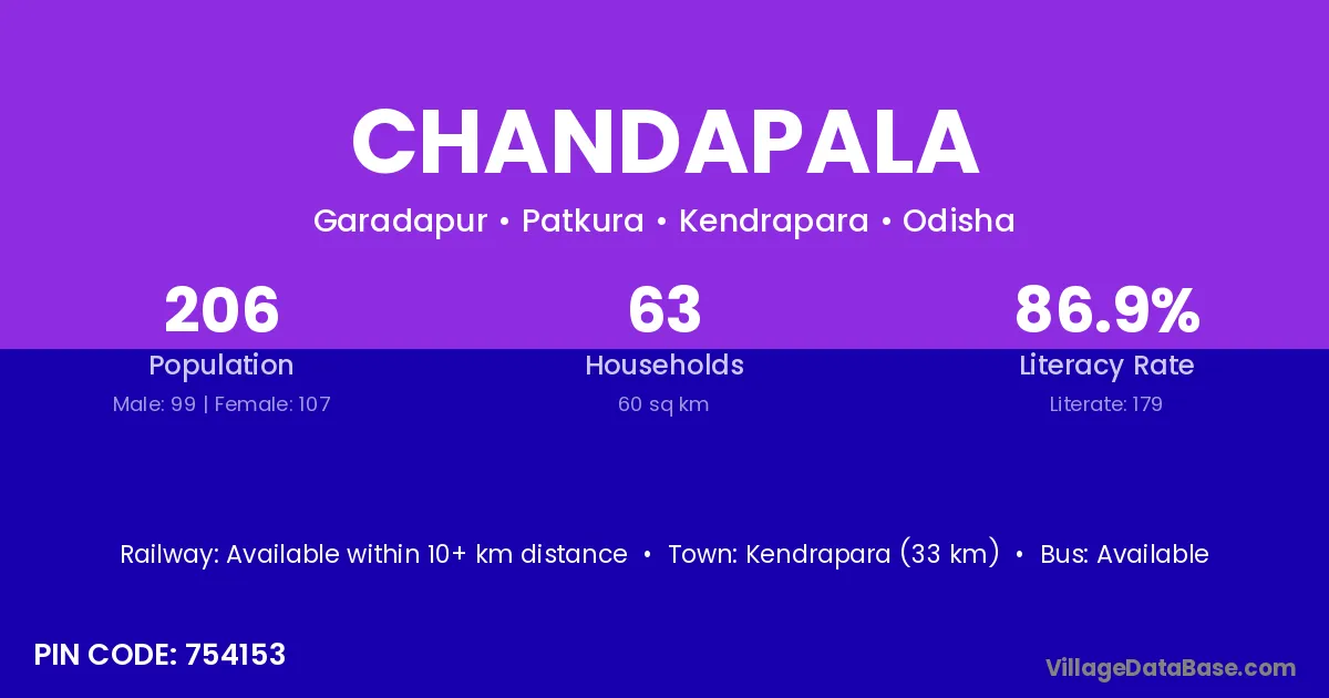 Kendrapara (33 km) is the nearest town to Chandapala village for major economic activities and is located approximately 33 km away.