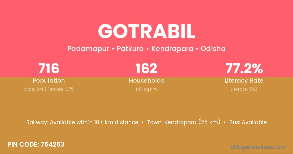 Gotrabil village has a total population of 716 people, of which 341 are males and 375 are females.