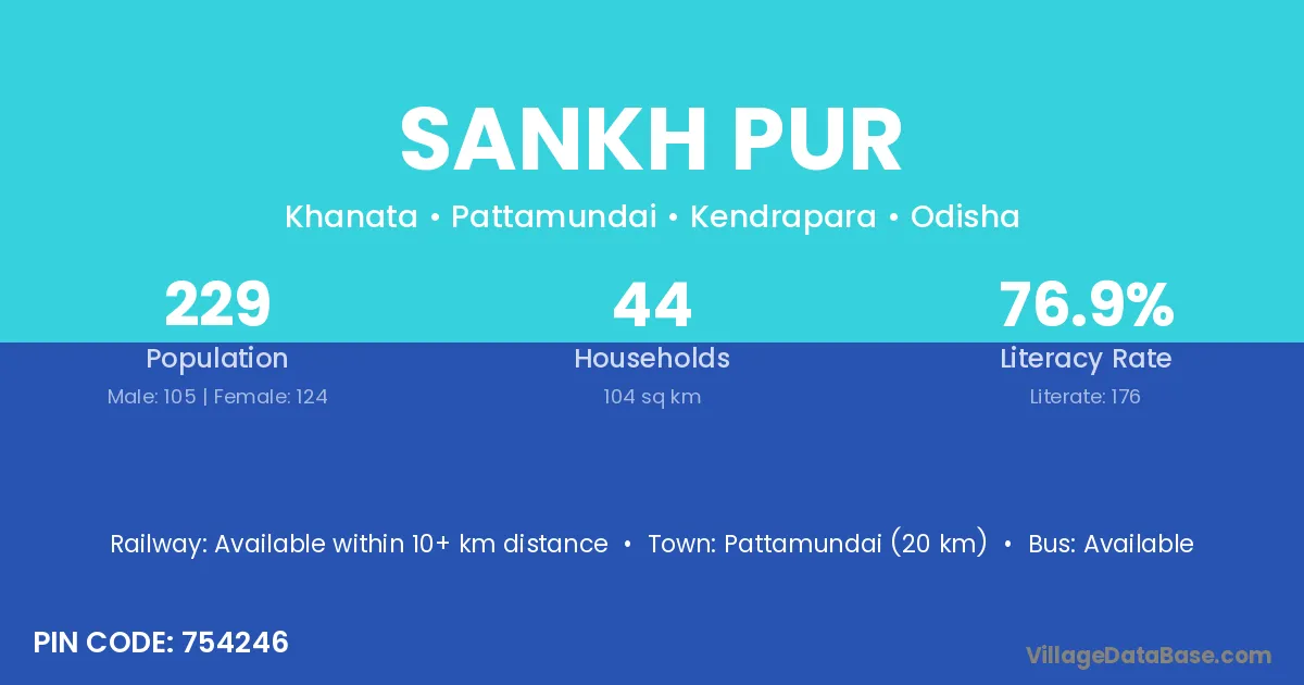Pattamundai (20 km) is the nearest town to Sankh Pur village for major economic activities and is located approximately 20 km away.
