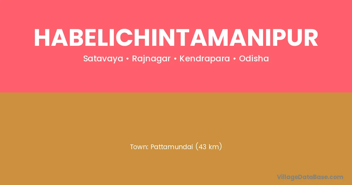 Pattamundai (43 km) is the nearest town to Habelichintamanipur village for major economic activities and is located approximately 43 km away.