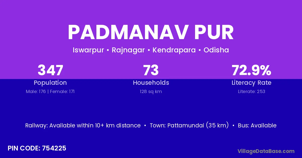 Pattamundai (35 km) is the nearest town to Padmanav Pur village for major economic activities and is located approximately 35 km away.