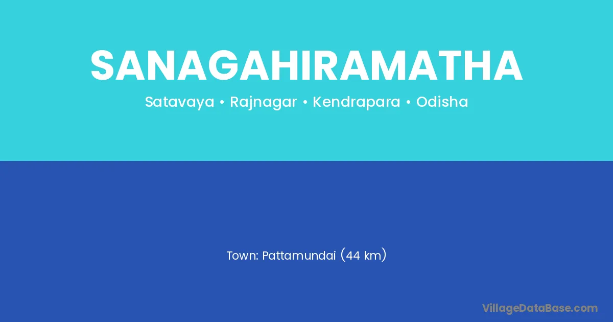 Pattamundai (44 km) is the nearest town to Sanagahiramatha village for major economic activities and is located approximately 44 km away.