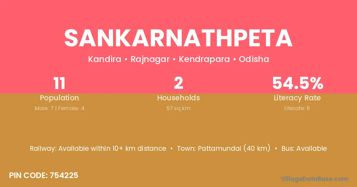 Sankarnathpeta village has a total population of 11 people, of which 7 are males and 4 are females.