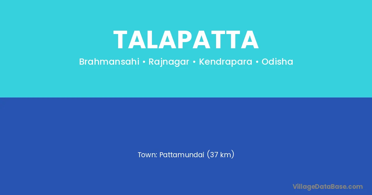 Pattamundai (37 km) is the nearest town to Talapatta village for major economic activities and is located approximately 37 km away.