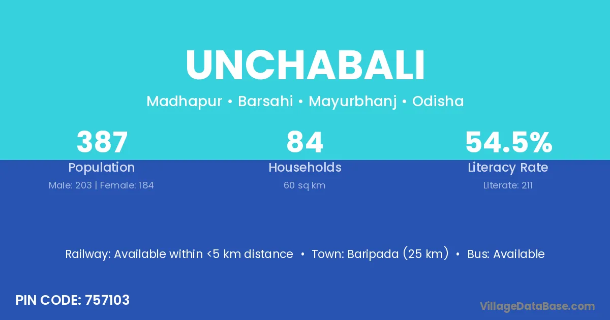 Joda (18 km) is the nearest town to Unchabali village for major economic activities and is located approximately 18 km away.