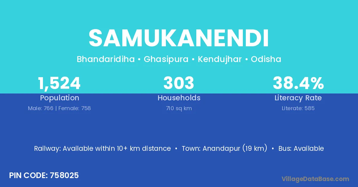 Samukanendi village is located in the Ghasipura Tehsil of the Kendujhar district in Odisha .