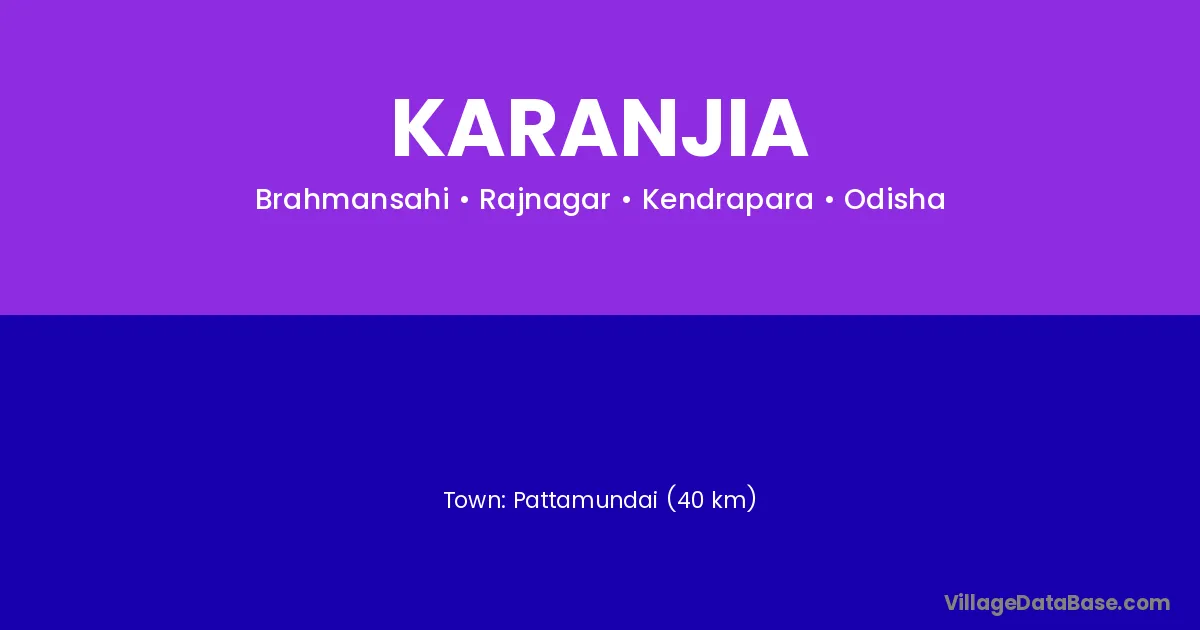 Kendujhar (48 km) is the nearest town to Karanjia village for major economic activities and is located approximately 48 km away.