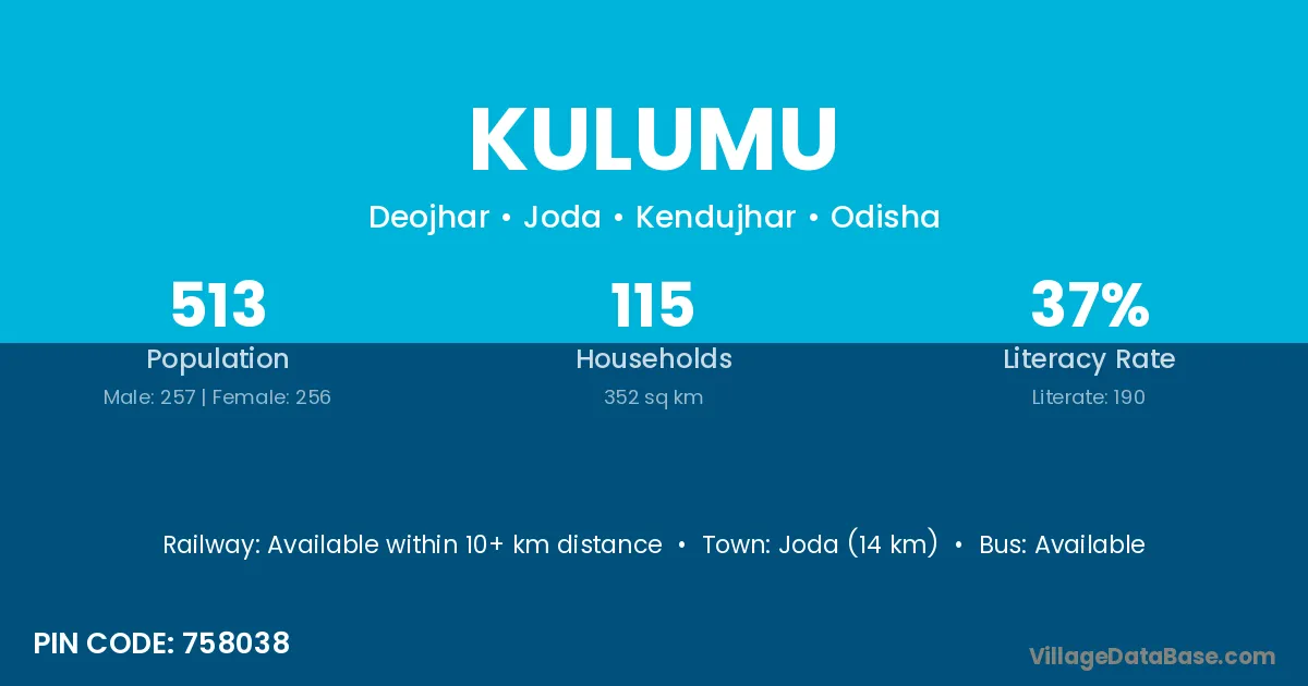 Kulumu village is located in the Joda Tehsil of the Kendujhar district in Odisha .