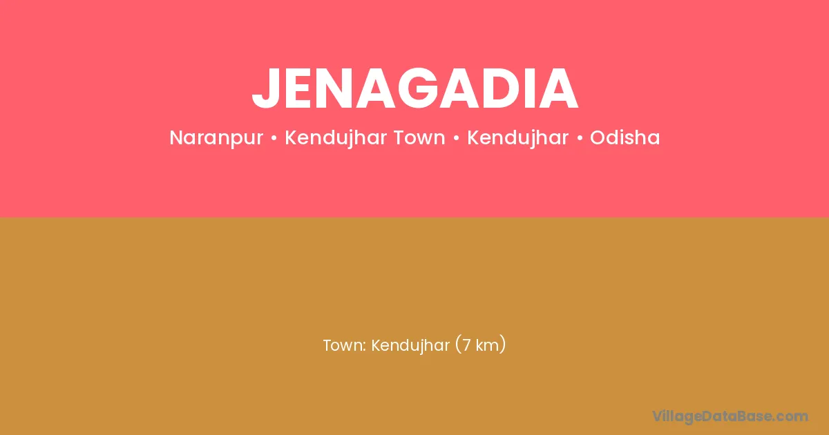 Kendujhar (7 km) is the nearest town to Jenagadia village for major economic activities and is located approximately 7 km away.