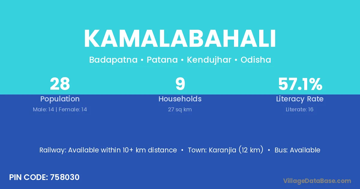 Kamalabahali village is located in the Patana Tehsil of the Kendujhar district in Odisha .