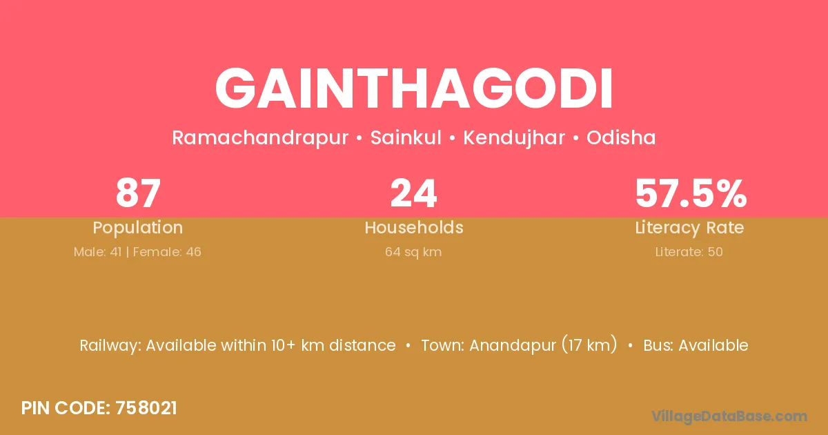 Gainthagodi village is located in the Sainkul Tehsil of the Kendujhar district in Odisha .