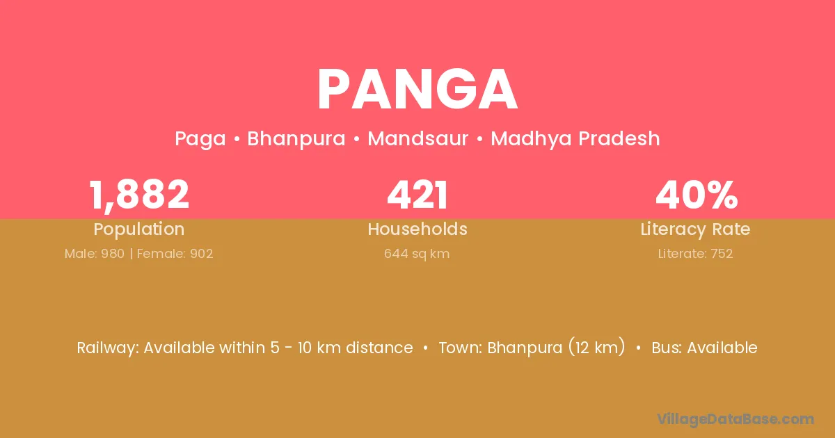 According to Census 2011 information, the village code of Panga village is 758019.