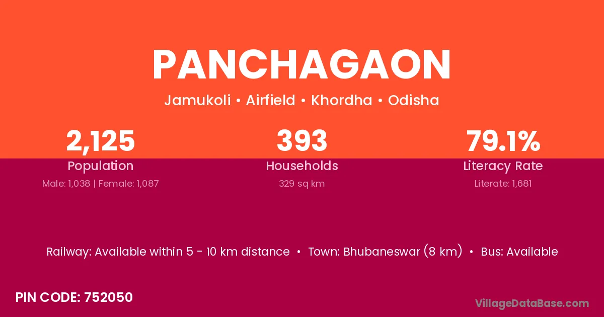 Bhubaneswar (8 km) is the nearest town to Panchagaon village for major economic activities and is located approximately 8 km away.