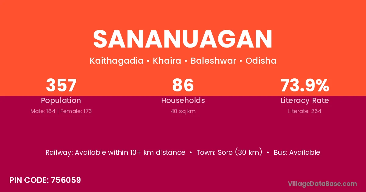 Bhubaneswar (10 km) is the nearest town to Sananuagan village for major economic activities and is located approximately 10 km away.