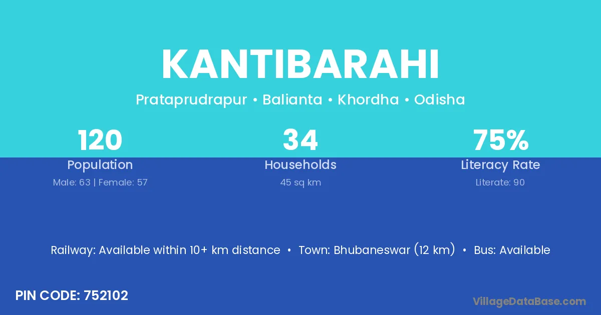 Bhubaneswar (12 km) is the nearest town to Kantibarahi village for major economic activities and is located approximately 12 km away.