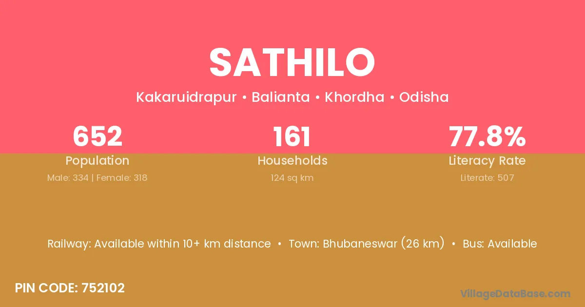 Bhubaneswar (26 km) is the nearest town to Sathilo village for major economic activities and is located approximately 26 km away.