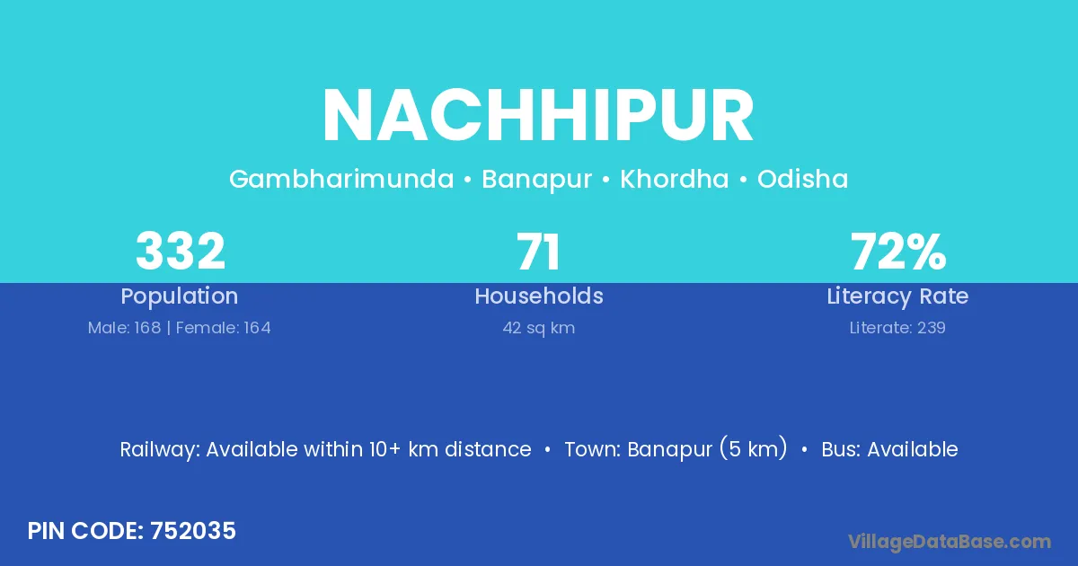 Banapur (5 km) is the nearest town to Nachhipur village for major economic activities and is located approximately 5 km away.