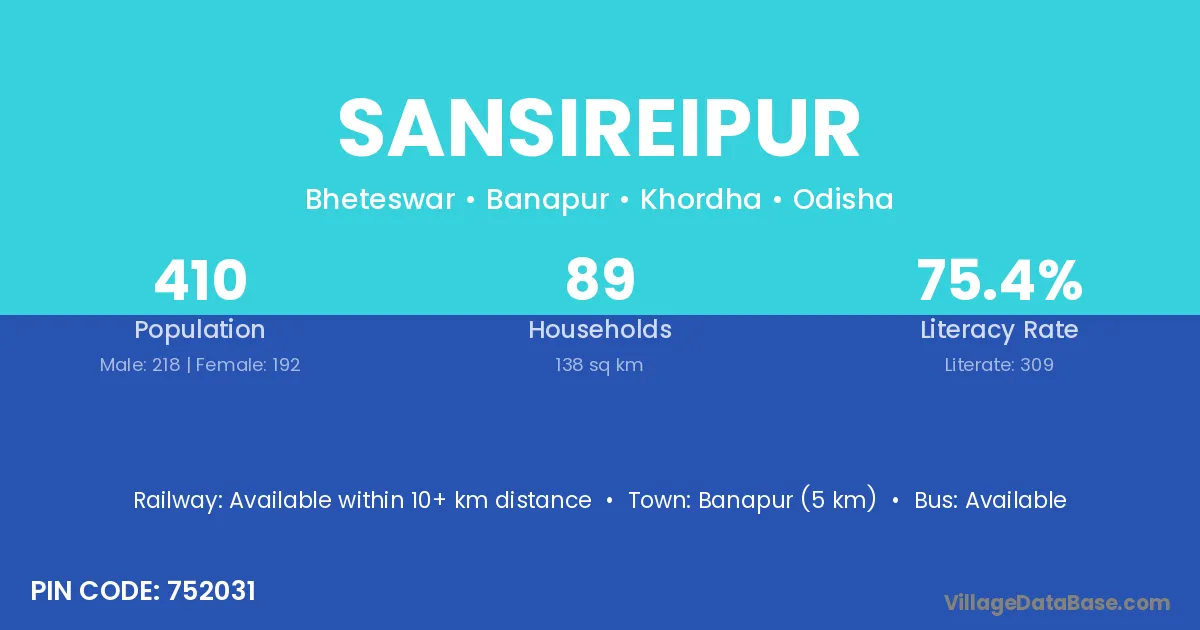 Banapur (5 km) is the nearest town to Sansireipur village for major economic activities and is located approximately 5 km away.