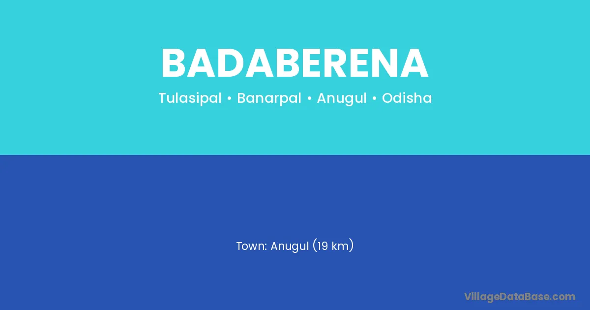 Khordha (15 km) is the nearest town to Badaberena village for major economic activities and is located approximately 15 km away.
