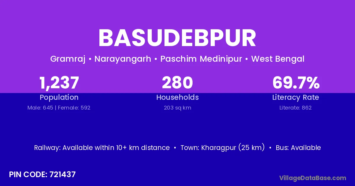 Khordha (22 km) is the nearest town to Basudebpur village for major economic activities and is located approximately 22 km away.